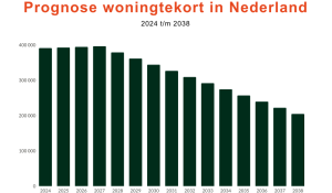 Intussen kampt Nederland met een tekort aan zowel huur- als koopwoningen van 390.000 woningen. Door het dalende aantal afgegeven bouwvergunningen en vertraging of uitstel van nieuwbouwprojecten mét vergunning loopt het tekort nog verder op tot 400.000 woningen in 2027.[1]